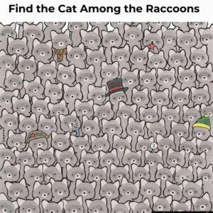 Can You Find the Cat Among the Raccoons? Let Us Know Your Answer and How You Figured It Out!